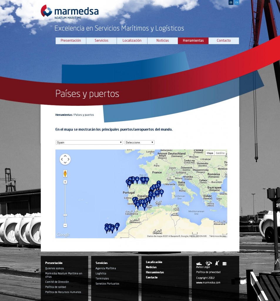 Detalles del proyecto Actividad: Servicios marítimos y logísticos Diseño: Personalizado. Tecnología: Php, Mysql, HTML, Css, Js Gestor de contenidos: Desarrollo con ERP soluciones Uno Visitar web